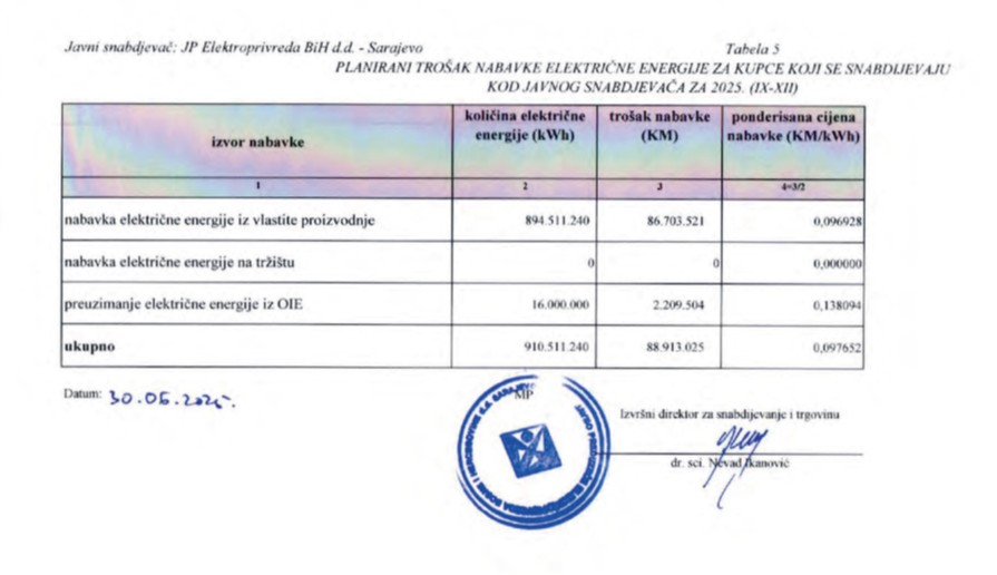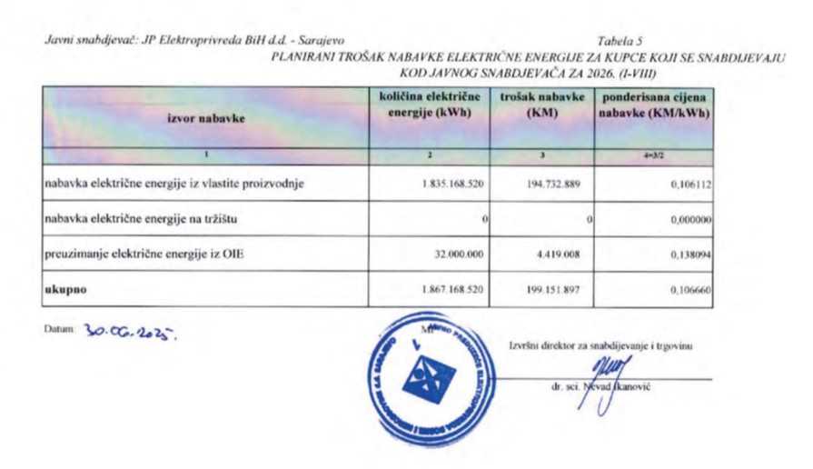 Drugim riječima, iz Elektroprivrede BiH poskupljenje električne energije temelje na vlastitom neradu, koji ih zbog nedovoljne vlastite proizvodnje primorava na snabdijevanje sa stranih tržišta. Kao da taj paradoks sam po sebi nije dovoljan, Elektroprivreda ide i korak dalje, pa u zahtjevu za poskupljenje dostavljenom FERK-u demantira samu sebe, prilažući planove troškova nabavke električne energije za kupce koji se snabdijevaju kod javnog snabdjevača, u kojima se jasno navodi da u 2025. i 2026. godini neće biti uvoza, već isključivo oslanjanja na vlastitu proizvodnju i preuzimanje iz domaćih obnovljivih izvora.