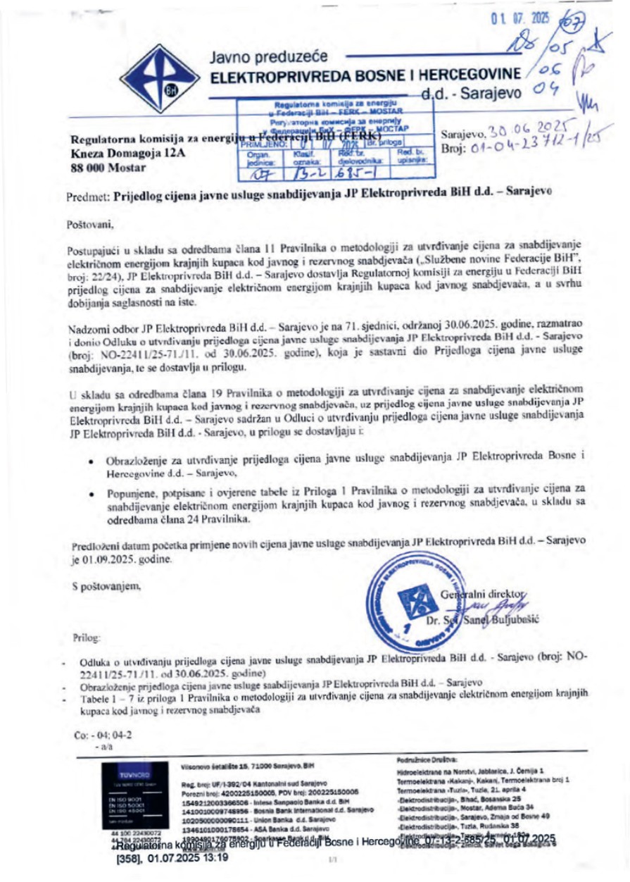 Javni opskrbljivač predlaže cijene usluge javne opskrbe po kojima isporučuje električnu energiju u okviru javne usluge, a cijene moraju biti predložene FERK-u najkasnije 60 dana prije njihove planirane primjene. Elektroprivreda BiH je FERK-u 1. 7. 2025. dostavila prijedlog cijene javne usluge opskrbe na suglasnost. FERK je sukladno propisanim pravilima pažljivo analizirao dostavljeni prijedlog kako bi utvrdio jesu li predložene cijene sukladne metodologiji za utvrđivanje cijena za opskrbu električnom energijom krajnjih kupaca kod javnog i rezervnog opskrbljivača i jesu li se stekli uvjeti za davanje suglasnosti FERK-a na njih“, sve je što s tim u vezi za Business Magazine kaže predsjedavajuća FERK-a Sanela Pokrajčić, a puno konkretniji nije ni sam Pravilnik, odnosno njime definirana metodologija utvrđivanja cijena, koja se uglavnom svodi na uopćene odredbe tipa da “cijena usluge opskrbe javnog opskrbljivača treba pokriti sve stvarno nastale troškove vezane za obavljanje usluge javne opskrbe“, “troškovi usluge opskrbe iznose maksimalno 15 posto od ukupnog troška nabave energije za opskrbu krajnjih kupaca kod javnog opskrbljivača“ ili “javni opskrbljivač je obvezan voditi računa o izbjegavanju naglih cjenovnih promjena za krajnje kupce koji se opskrbljuju kod javnog opskrbljivača“, koje ostavljaju praktično neograničen prostor za sve moguće vrste manipuliranja tržišnim pokazateljima i drugim relevantnim podacima.