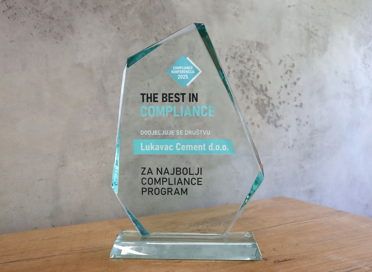 Program Lukavac Cementa ocijenjen je kao najbolji u konkurenciji s uglednim kompanijama kao što su Financijska agencija – Fina, ENT – Ericsson Nikola Tesla i BOSQAR INVEST. Nagradu su preuzeli generalni direktor Stjepan Kumrić i asistent za pravo i usklađenost Denis Čustić.