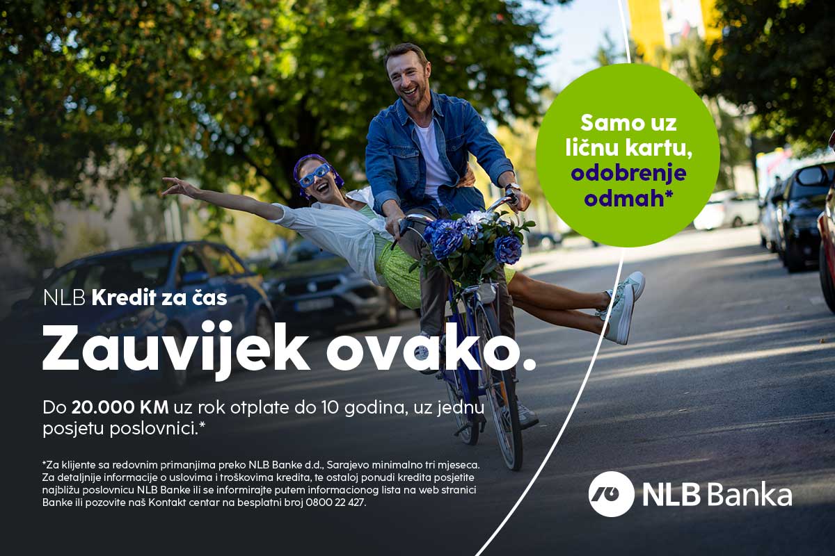 Uslovi važe za klijente sa redovnim primanjima u NLB Banci d.d., Sarajevo minimalno tri mjeseca. Sve dodatne informacije o troškovima, kamatnim stopama i ostalim pogodnostima dostupne su u najbližoj poslovnici ili na web stranici banke.
