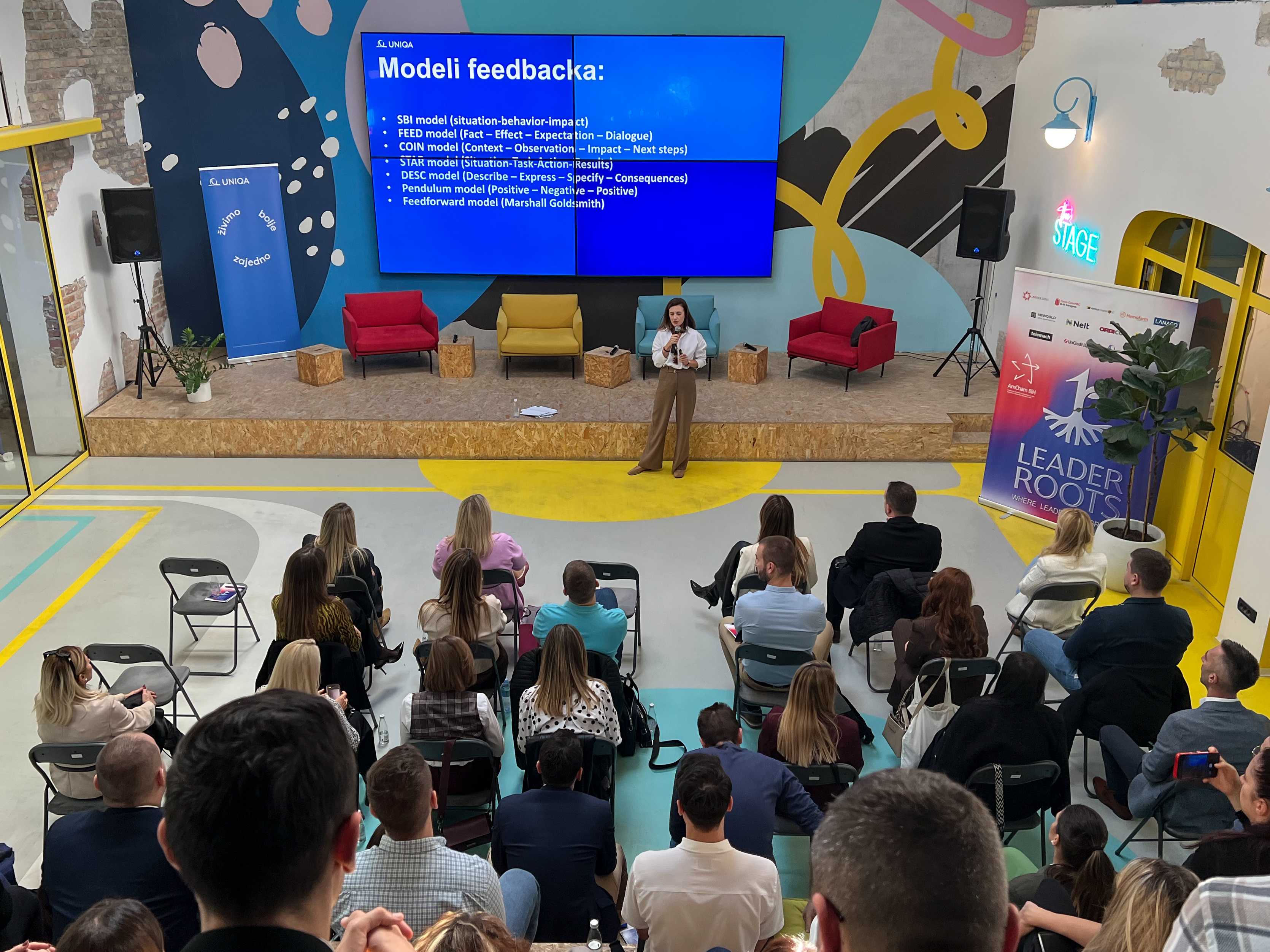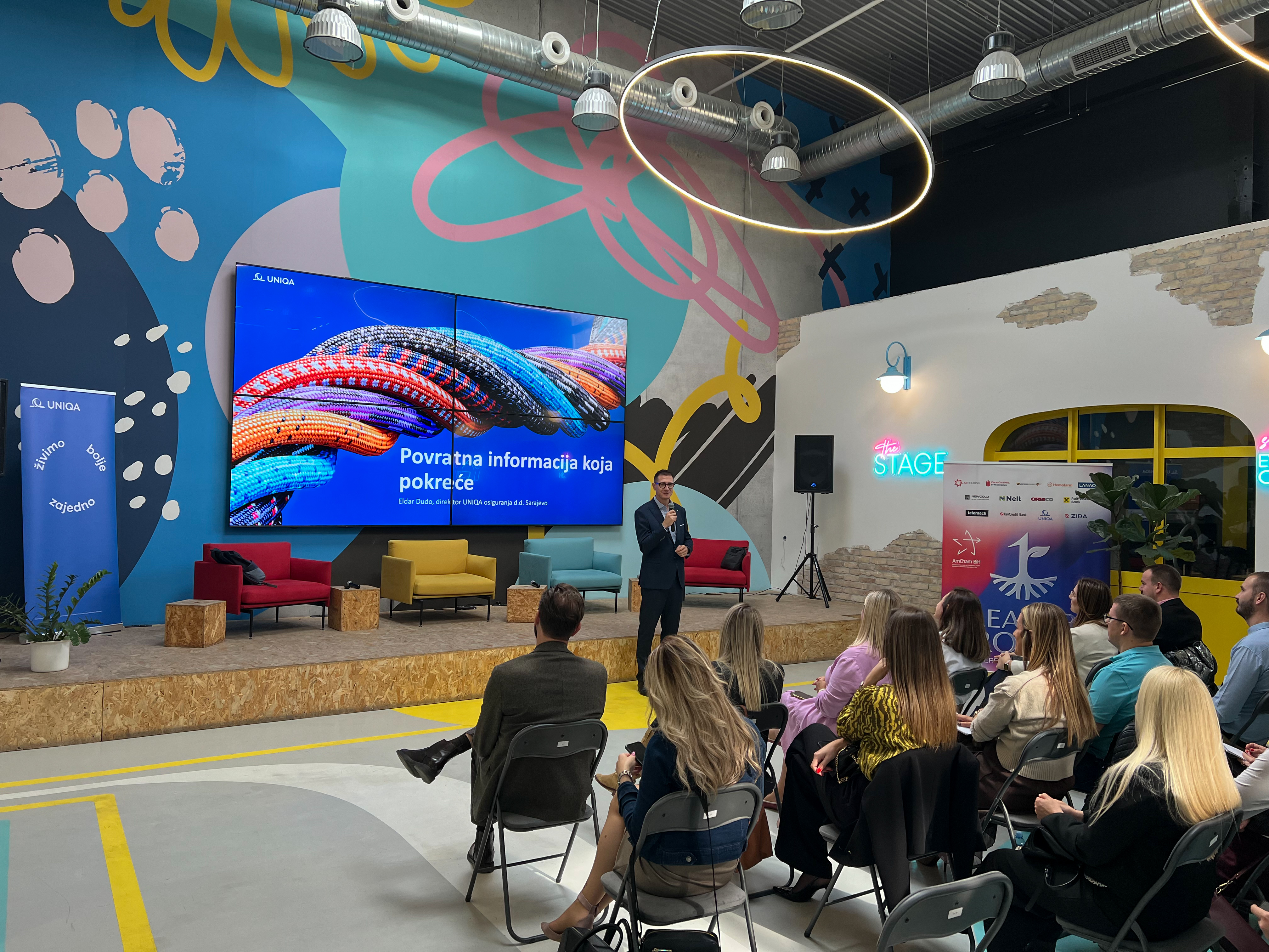 Ovu sesiju, pod nazivom „Povratna informacija koja pokreće“, vodio je tim iz UNIQA osiguranja, koji je učesnicima ponudio spoj teorije, prakse i stvarnih poslovnih iskustava. Eldar Dudo, Alma Hodžić, Jasmin Kukuljac i Nerma Vukasović govorili su otvoreno o liderstvu u praksi – o važnosti iskrenih razgovora, učenju iz grešaka i prepoznavanju povratne informacije kao prilike za rast, a ne kao kritike.
