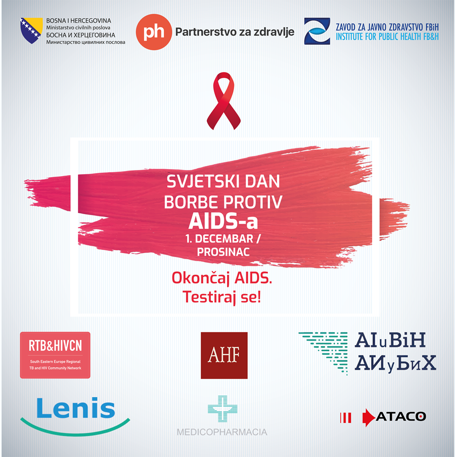 Udruženje Partnerstvo za zdravlje zajedno sa brojnim partnerima iz vladinog i nevladinog sektora radi na prevenciji širenja HIV-a, te poboljšanju liječenja i zbrinjavanja osoba koje žive s HIV-om. U sklopu kampanje obilježavanja 1. 12 – svjetskog dana borbe protiv AIDS-a, Partnerstvo za zdravlja, pod pokroviteljstvom Ministarstva civilnih poslova BiH i u saradnji sa Aids Healthcare Foundation (AHF), Ministarstvo zdravlja i socijalne zaštite Republike Srpske, Zavodom za javno zdravstvo FBiH, Lenis farmacevtika d.o.o, Medicopharmacia d.o.o, Asocijacijom infektologa u Bosni i Hercegovini i Udruženjem studenata medicine u BiH – BoHeMSA organizuje besplatno testiranje na HIV i hepatitis B i C na više lokacija u Bosni i Hercegovini na dan 1.12.2025. godine. Uz besplatno i anonimno savjetovanje i testiranje građani mogu dobiti i edukativni material, koji nudi informacije o putevima prenosa i zaštite od virusa. Lokacije na kojima će se vršiti testiranje su sljedeće: