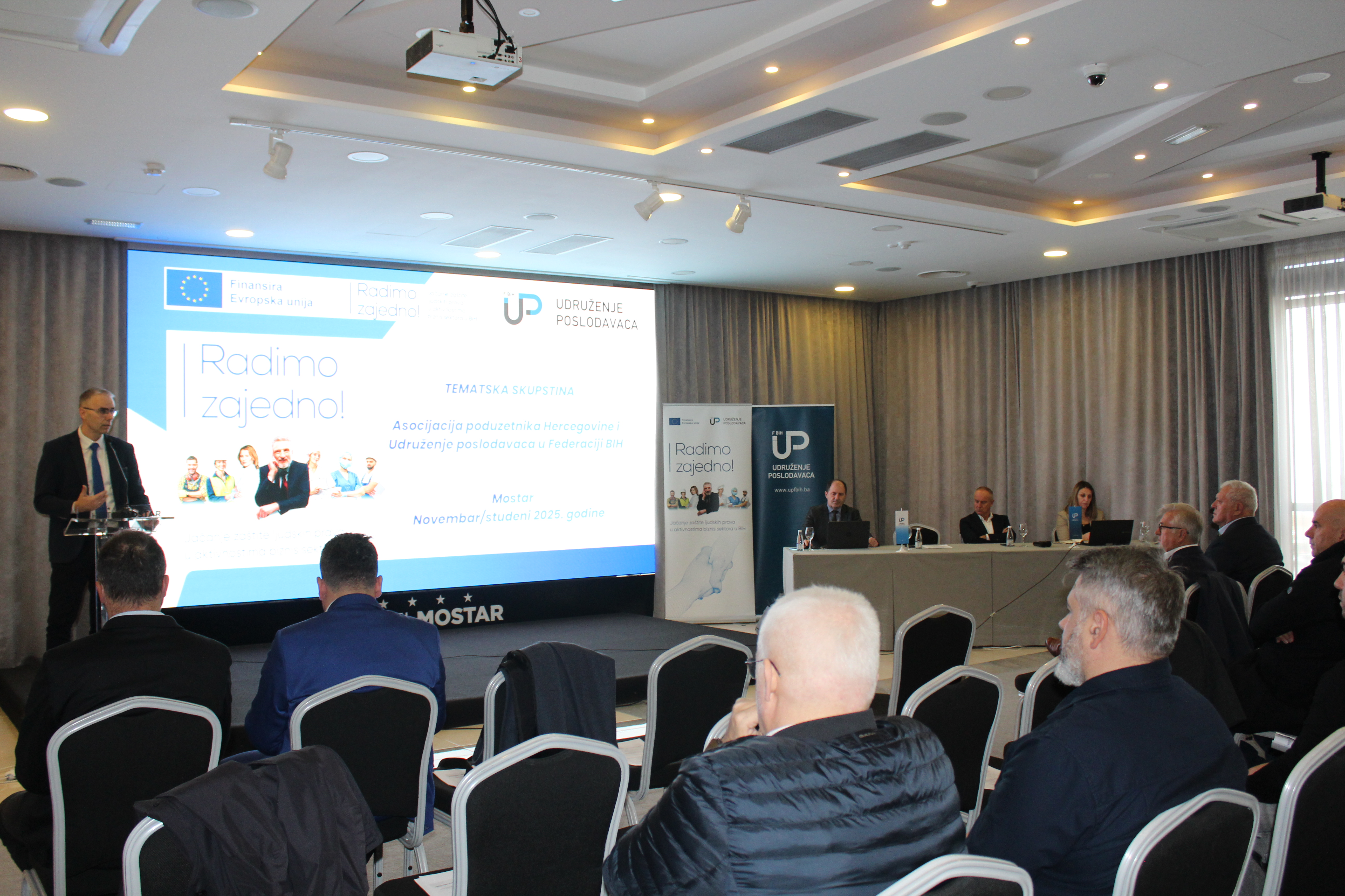 Tematsku skupštinu su otvorili predsjednik Asocijacije poduzetnika Hercegovine Damir Vidačak i predsjednik Udruženja poslodavaca u FBiH Nihad Imširović koji su u uvodnim obraćanjima istakli značaj zajedničkog djelovanja poduzetnika u zagovaranju boljeg poslovnog ambijenta i ključnih reformskih procesa.
