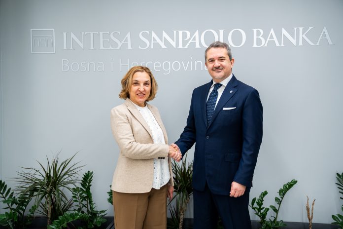 Povodom proširenja postojeće saradnje i ugovaranja novih kreditnih linija, predstavnici Intesa Sanpaolo Banke Michele Castoro, predsjednik Uprave i Minja Filipović, članica Uprave Banke, te Stela Melnic direktorica EBRD za Bosnu i Hercegovinu, potpisali su ugovore o saradnji, a tiču se zelenih ulaganja u stambeni sektor, kao i podršku preduzetništvu mladih i preduzeća koja vode žene u Bosni i Hercegovini u ukupnom iznosu od 4 miliona eura.