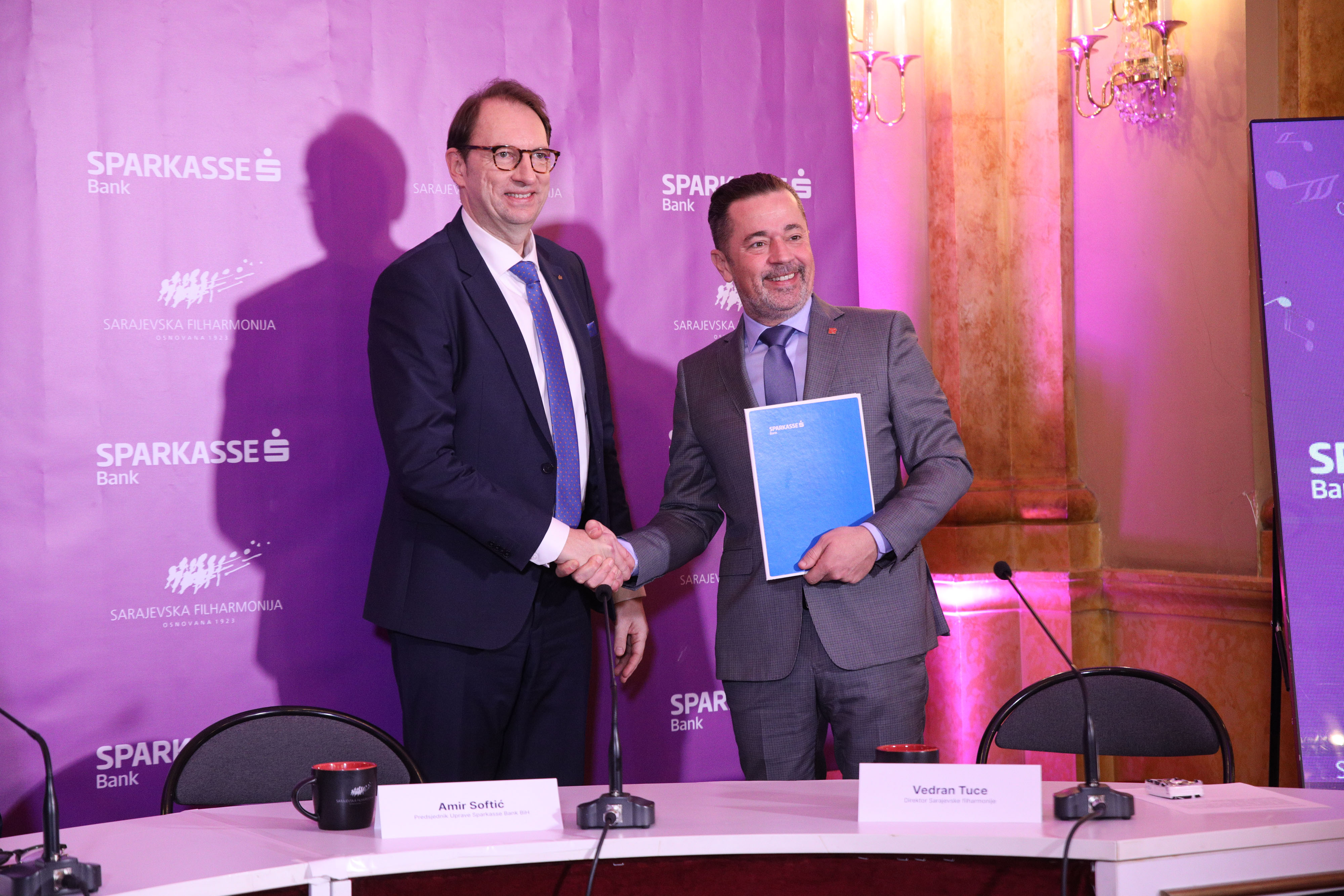Premijer Kantona Sarajevo Nihad Uk pozdravio je potpisivanje ugovora kao snažan primjer uspješne saradnje javnog i privatnog sektora, ističući da se kvalitetan rad Sarajevske filharmonije prepoznaje kako kod publike, tako i kroz ovo partnerstvo sa Sparkasse bankom. Tom prilikom uputio je zahvalnost predsjedniku Uprave gospodinu Softiću i Sparkasse Banci, koji su Sarajevsku filharmoniju i Vladu Kantona Sarajevo prepoznali kao vrijedne i pouzdane partnere. Naglasio je da je saradnja javnog i privatnog sektora, posebno u oblasti kulture, važna i uobičajena praksa, te pozvao i druga pravna lica da se uključe i postanu partneri u stvaranju kvalitetnijeg okruženja za građane Kantona Sarajevo, ali i Bosne i Hercegovine u cjelini.