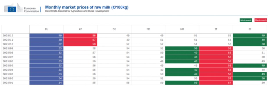 Ako obratimo pažnju na cijene uvezenog sira, vidjet ćemo da je ona prosječno 9,3 KM/kg, a u decembru 2025. još niža – 8,15 KM/kg. Taj sir je morao biti proizveden od mlijeka koje je ranije namuženo, vjerovatno je riječ barem o oktobru, kada je otkupna cijena mlijeka u EU, prema zvaničnim podacima, bila 0,53 eura.