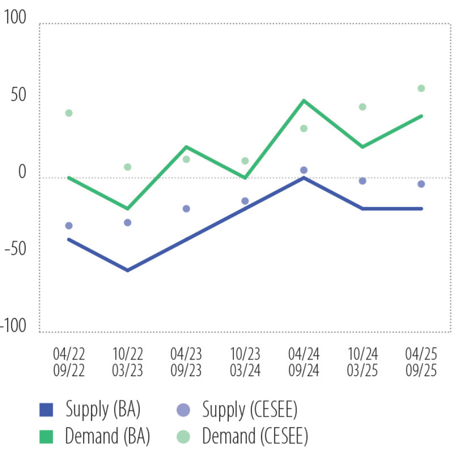 “Potražnja za kreditima je ostala jaka posljednjih godina i nastavila je jačati u proteklih šest mjeseci. Nasuprot tome, ponuda kredita je slaba od 2022. godine, pokazujući samo blago poboljšanje u 2024. prije nego što je ponovo pala početkom 2025. godine.