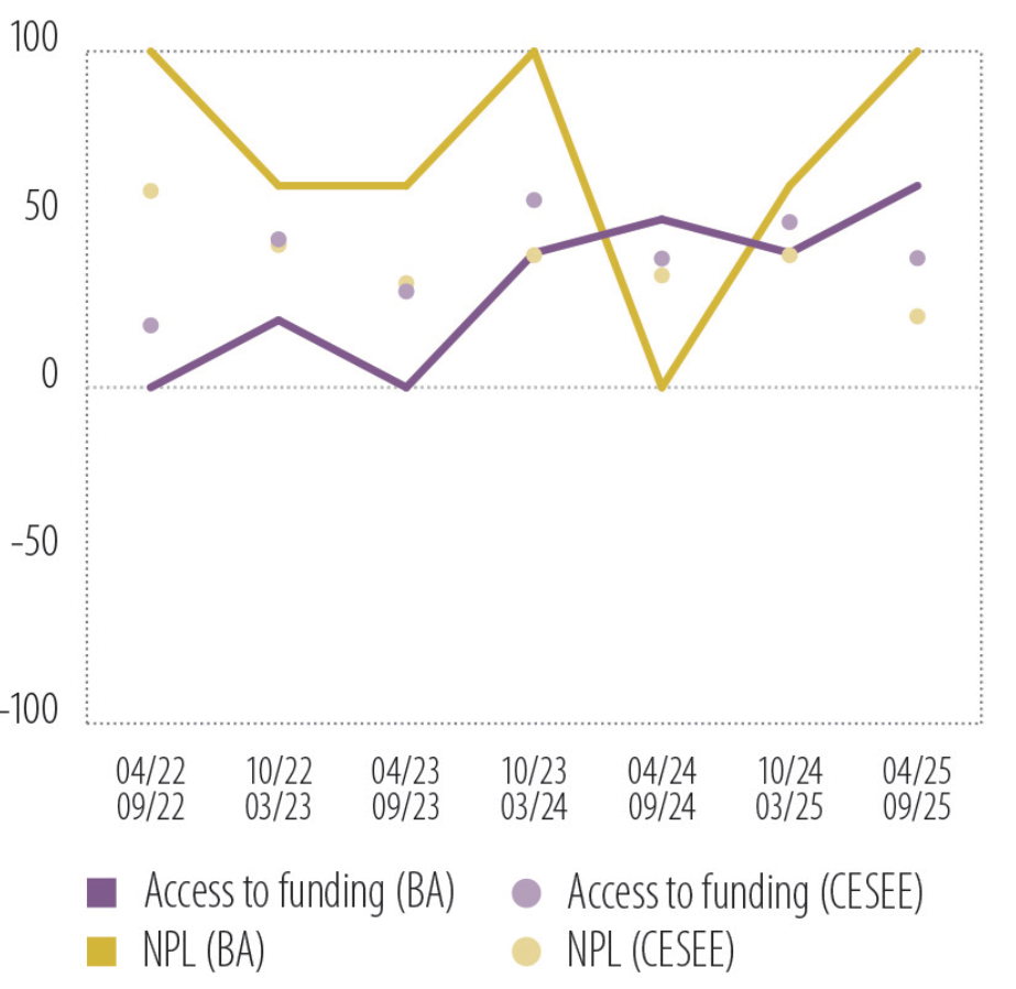 U cijeloj regiji evidentno je i poboljšanje pristupa finansiranju, koje se očekuje i u narednom periodu, na krilima rastućih depozita stanovništva i preduzeća, kontinuiranog priliva sredstava od međunarodnih finansijskih institucija te veleprodajnog izdavanja duga.