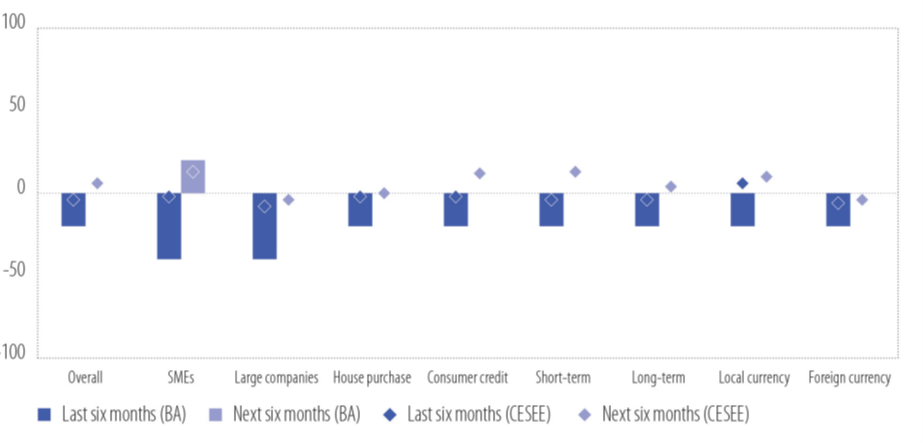 Potražnja za kreditima nastavila je jačati u proteklih šest mjeseci, dok se ponuda kredita vratila na silazni trend koji je sa kratkotrajnim prekidima prisutan od 2022. godine