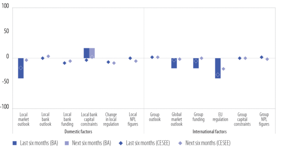 Na strani ponude kredita, nakon perioda kontrakcije, banke očekuju blago poboljšanje. Očekuje se da će se apetit za kreditiranjem posebno povećati za mala i srednja preduzeća i potrošačke kredite, s manjim entuzijazmom za velike kompanije i hipoteke“, sumira se u Anketi, u kojoj se potencijal regionalnog tržišta ocjenjuje kao visok (posebno u Češkoj i Rumuniji) ili srednji (na tržištima Zapadnog Balkana), dok se profitabilnost u regiji smatra snažnom u poređenju sa ukupnim poslovanjem grupacija, što je posebno karakteristično za Bosnu i Hercegovinu.